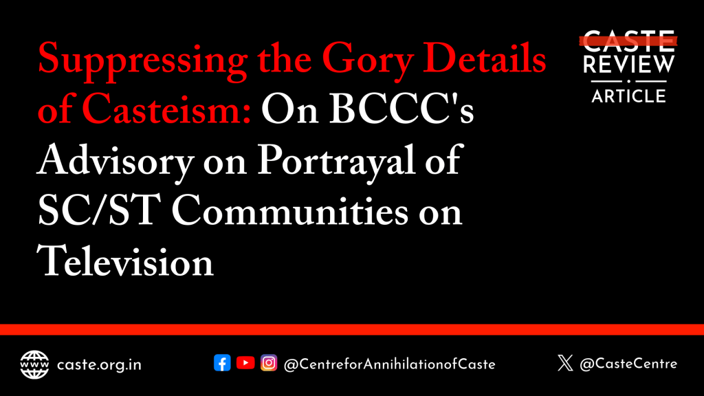 On October 17, 2023, the Broadcasting Content Complaint Council (BCCC) issued an advisory concerning the portrayal of Scheduled Caste (SC) and Scheduled Tribe (ST) communities on television. While the stated intent of this advisory is to shield these communities from negative depiction, it raises important questions about the suppression of real and honest portrayals of casteism. This article critically examines the advisory, its implications, and its potential consequences on artistic freedom and the representation of marginalized communities.